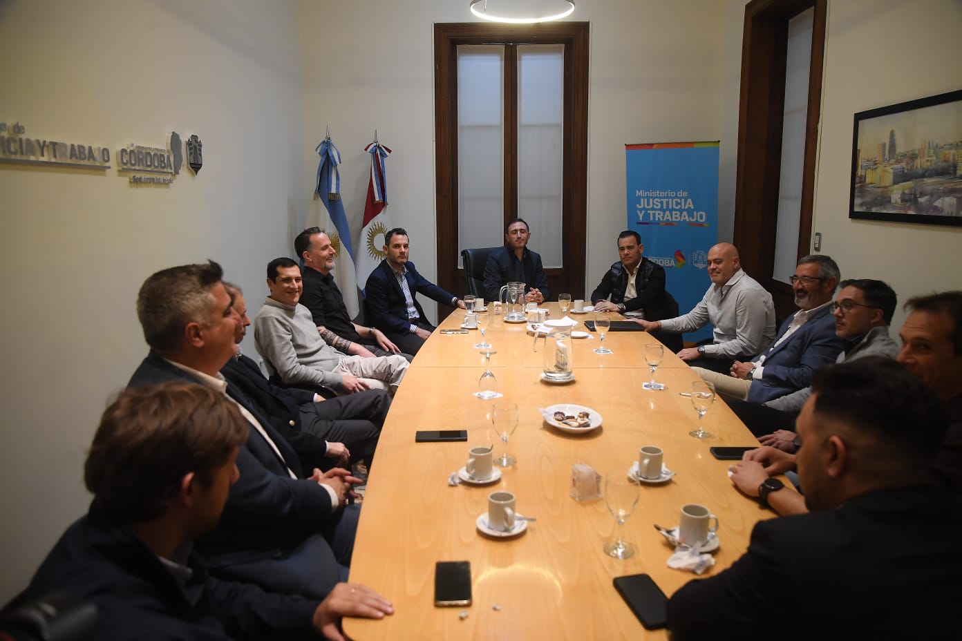 El ministro de Justicia y Trabajo, Julián López, y el Secretario de Transporte, Marcelo Rodio, se reunieron esta tarde con los titulares y representantes de ambas cámaras empresariales del transporte interurbano de la provincia, FETAP y ASETAC.